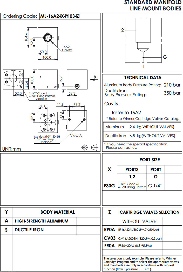 ML-16A2-F30G-A03-RP0A,ML-16A2-F30G-A03-CV03,ML-16A2-F30G-A03-FR0A,winner標準配管式油路板