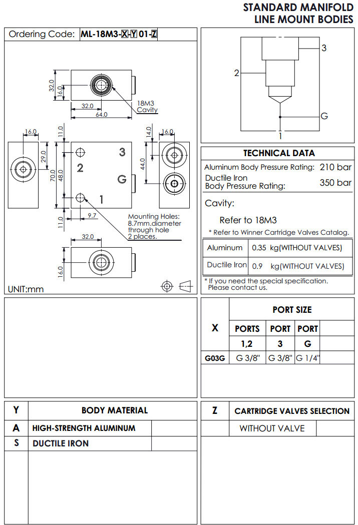 詳細信息 ML-18M3-A01,ML-18M3-S01,winner標準配管式油路板