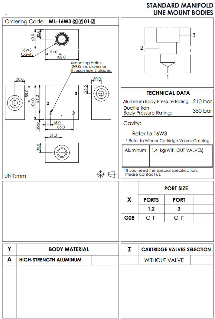 詳細(xì)信息 ML-16W3-G08-A01,winner標(biāo)準(zhǔn)配管式油路板