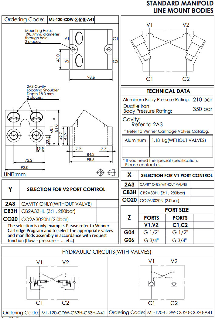 ML-120-CDW-2A3-2A3-G04-A41,ML-120-CDW-CB3H-CB3H-G04-A41,ML-120-CDW-CO20-CO20-G04-A41,winner標(biāo)準(zhǔn)配管式油路板
