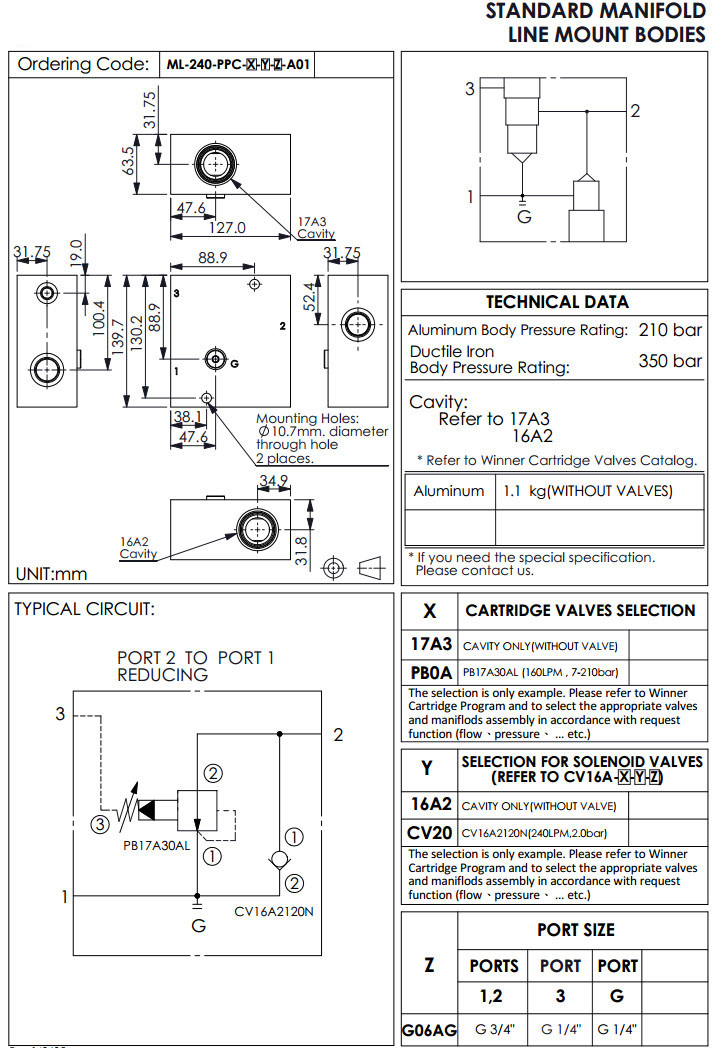ML-240-PPC-17A3-16A2-G06AG-A01,ML-240-PPC-PB0A-16A2-G06AG-A01,winner標準配管式油路板