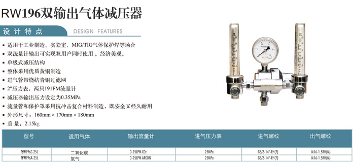 詳細(xì)信息 RW196C-25L,RW196A-25L,流量計(jì)減壓器