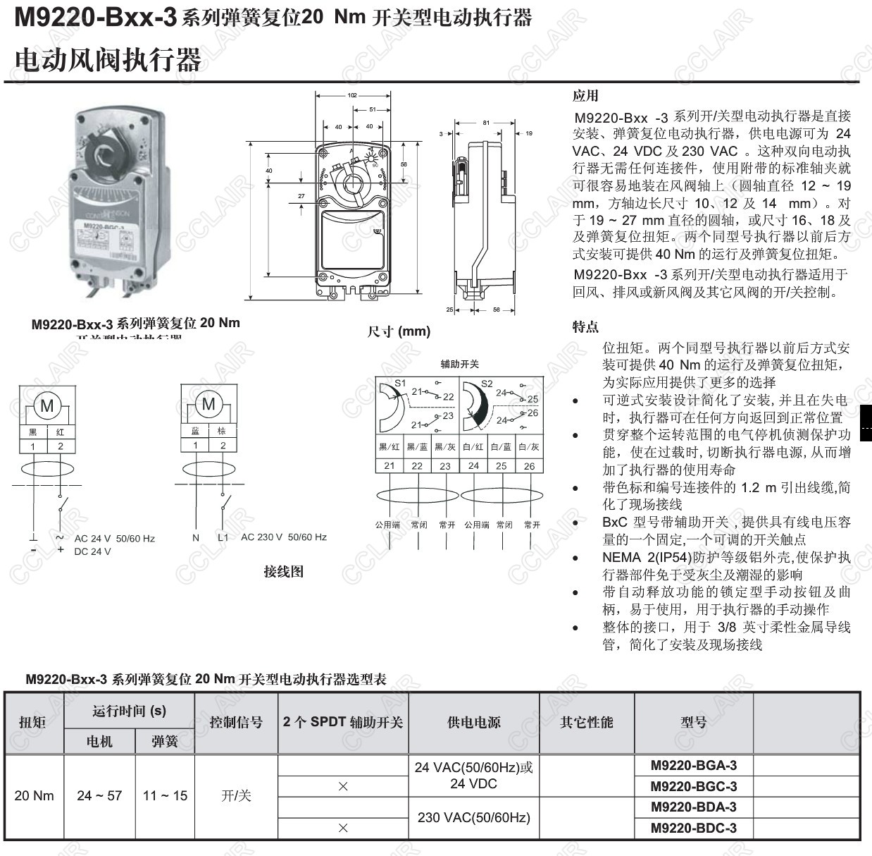 M9220-BGA-3,M9220-BGC-3,M9220-BDA-3,M9220-BDC-3,M9220-Bxx-3,電動風閥執(zhí)行器