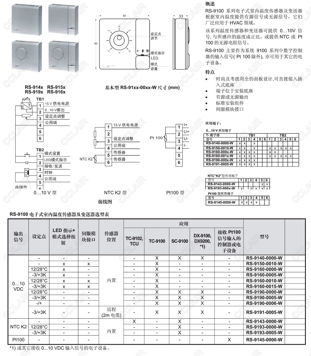 RS-9140-0000-W,RS-9150-0010-W,RS-9160-0000-W,RS-9100,電子式室內(nèi)溫度傳感器及變送器