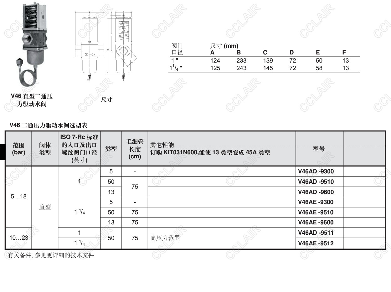 詳細(xì)信息 V46AD-9300,V46AD-9510,V46AD-9600,V46AE-9300,V46AE-9510,V46AE-9600,V46,二通壓力驅(qū)動(dòng)水閥直型