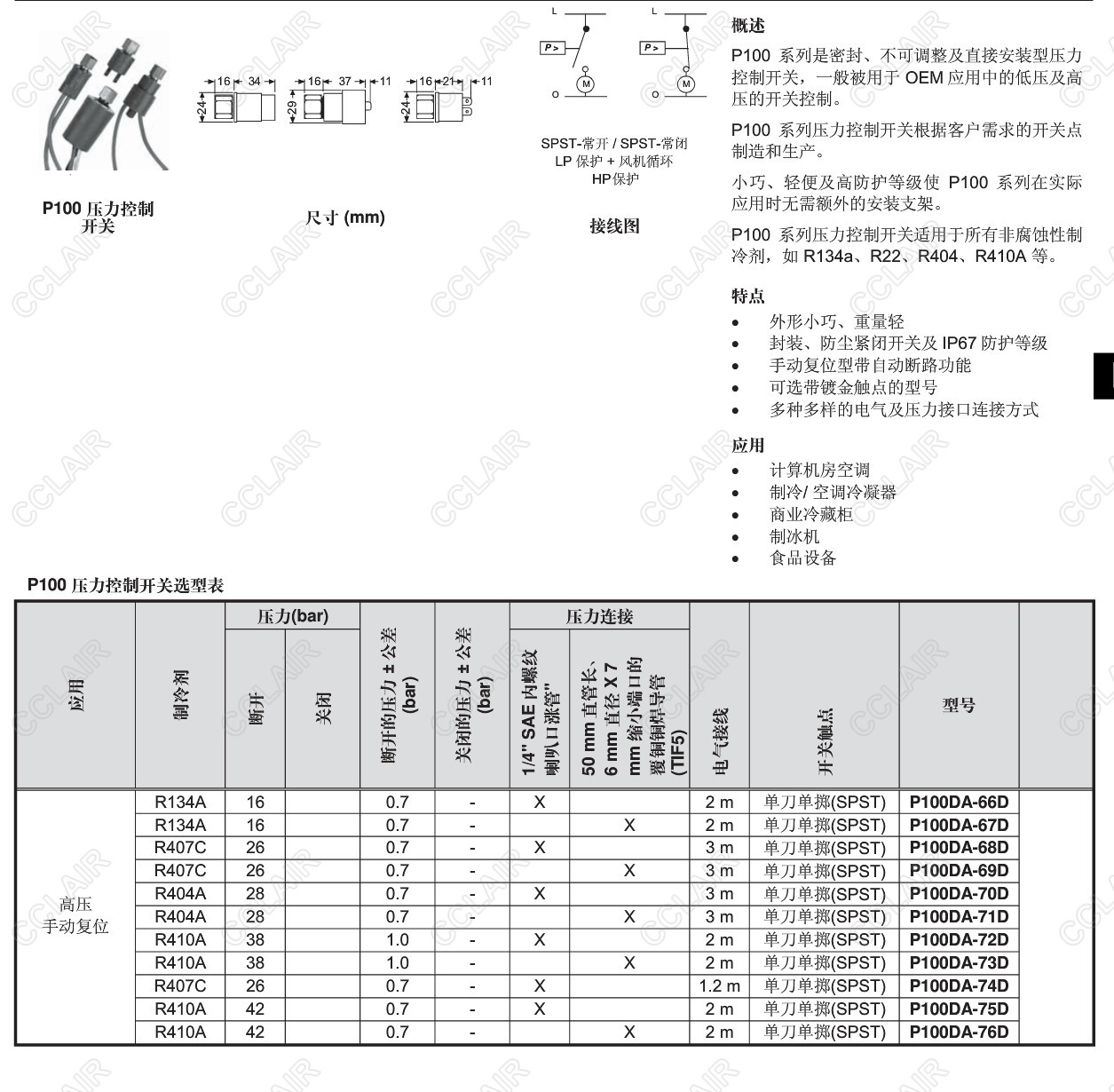 詳細(xì)信息 P100AP-300D,P100AP-301D,P100AP-302D,P100AP-303D,P100AP-304D,P100,直接安裝壓力控制開(kāi)關(guān)