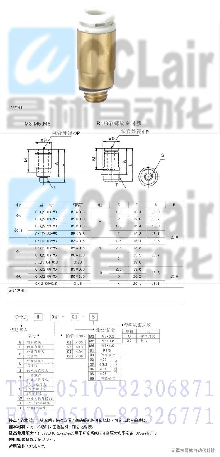 C-KJS06-M5,C-KJS06-M6,C-KJS06-01S,內(nèi)六角直通接頭,