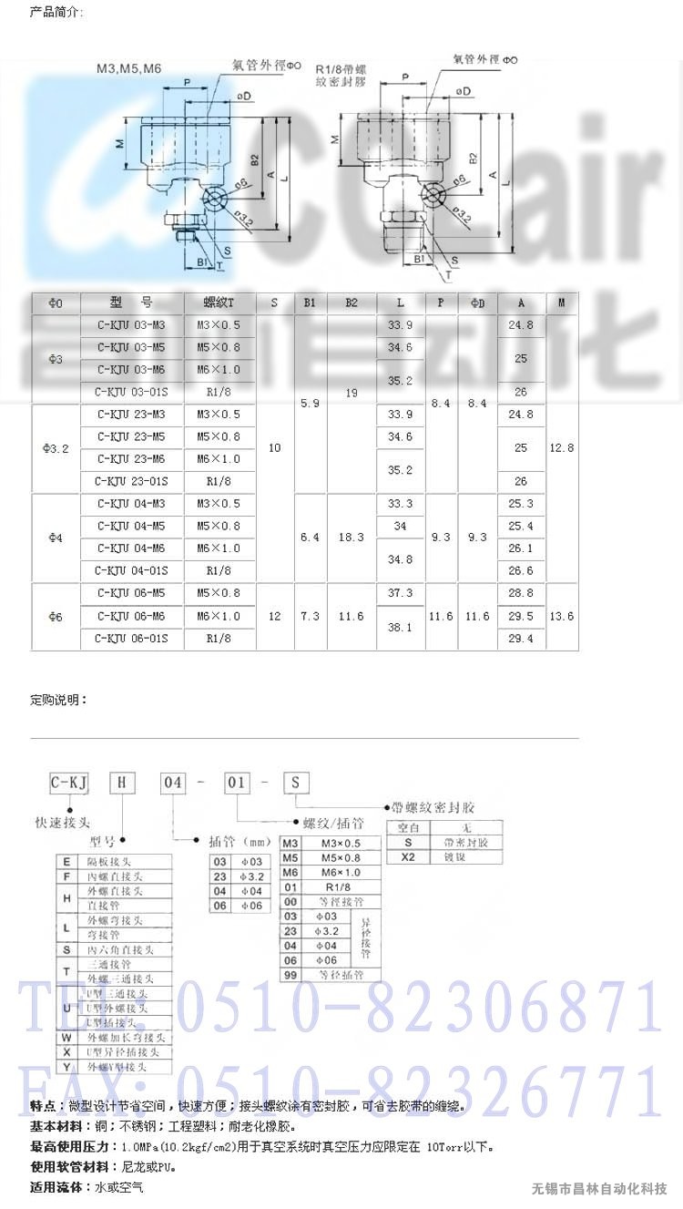 C-KJU23-M3,C-KJU23-M5,C-KJU23-M6,C-KJU23-01S, U型外螺接頭