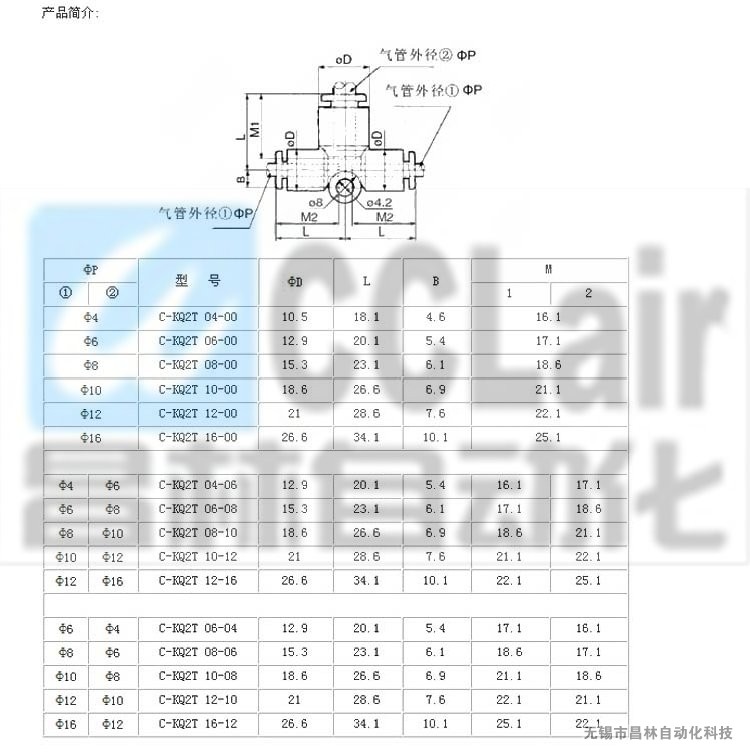 詳細信息 C-KQ2T04-00,C-KQ2T04-06,T型三通接管 ,生產廠家,價格