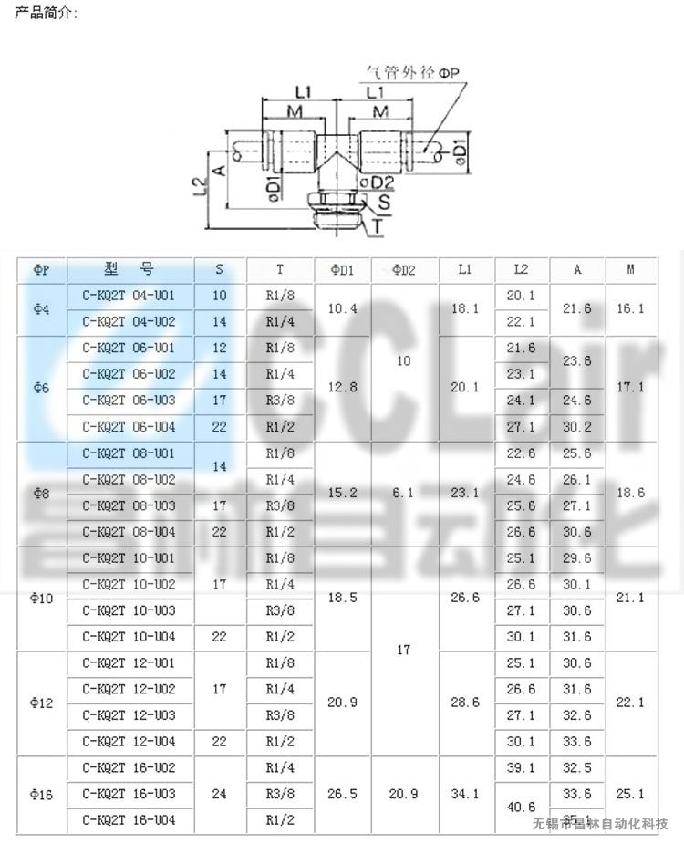 詳細信息 C-KQ2T04-U01,C-KQ2T04-U02,外螺T型接頭,生產(chǎn)廠家,價格