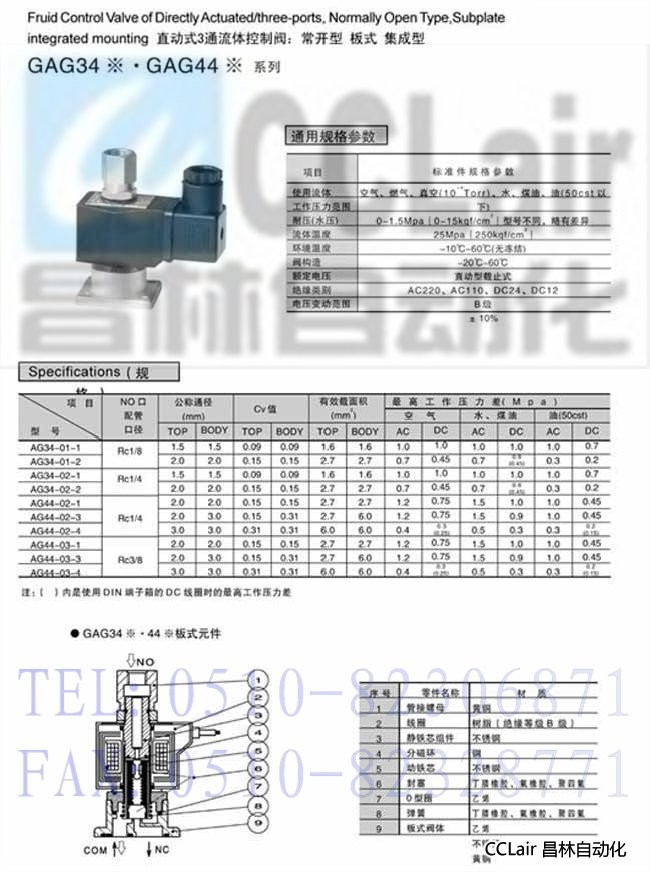 詳細信息 GAG44-03-1,GAG44-03-3,GAG44-03-4,流體控制閥
