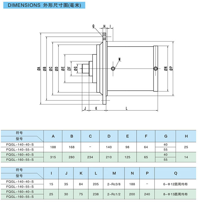 FQGL-140-40-S,FQGL-140-55-S,FQGL-160-40-S,FQGL-160-55-S,頂尖氣缸