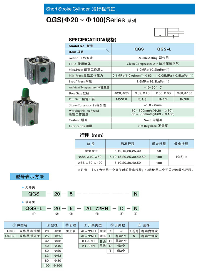 QGS-L-50-15,QGS-L-50-20,QGS-L-50-25,QGS-L-50-30,QGS-L-50-40,QGS-L-50-50,QGS-L-63-5,QGS-L-63-10,
