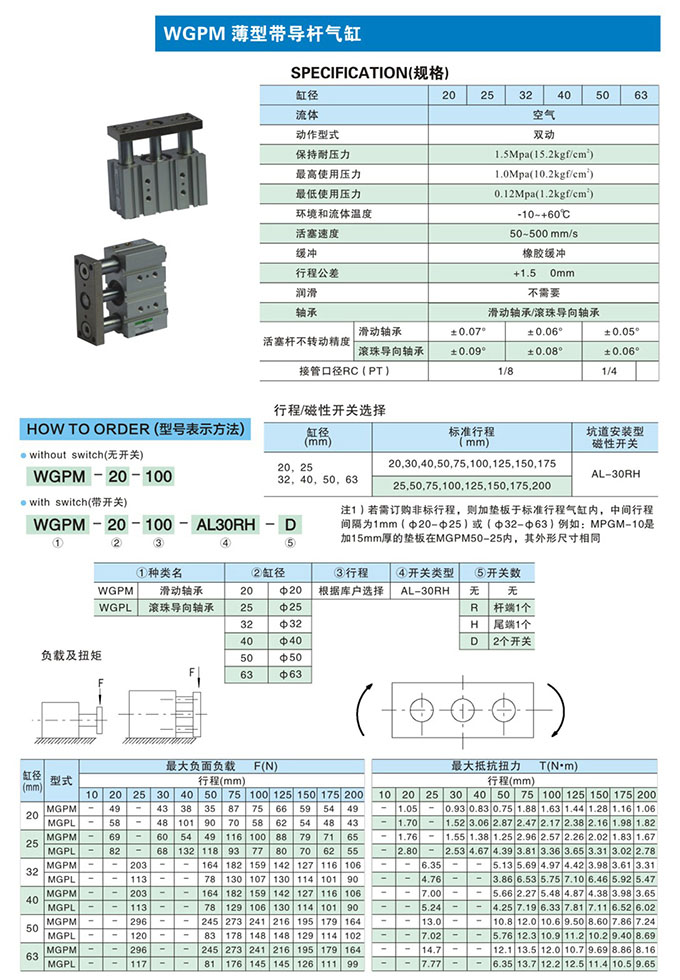 WGPM-20,WGPM-25,WGPM-32,WGPM-40,WGPM-50,WGPM-63,WGPL-20,WGPL-25,WGPL-32,WGPL-40,帶導(dǎo)桿氣缸