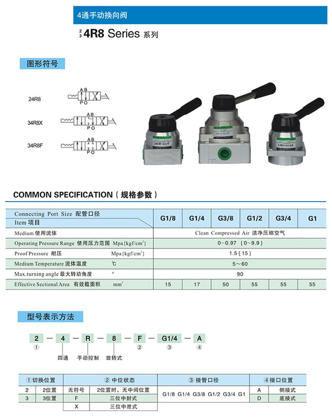 34R8F-G1/8,34R8F-G1/4,34R8F-G3/8,34R8F-G1/2,34R8F-G3/4,34R8F-G1,34R8F-G1/8-A,4通手動(dòng)換向閥