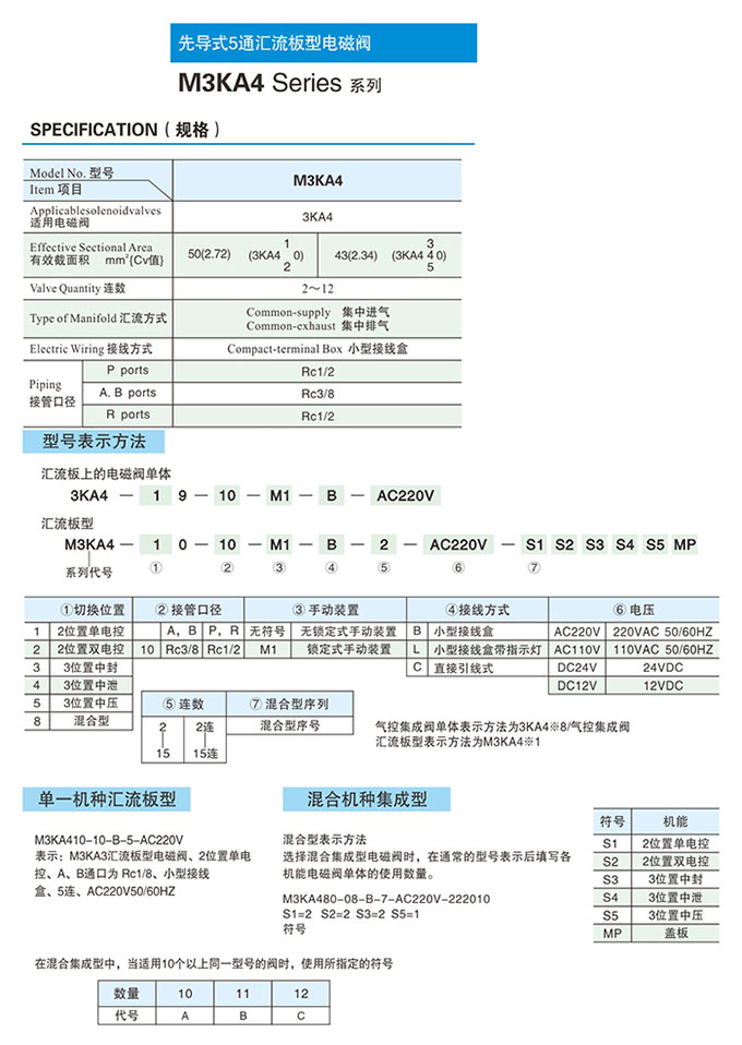 3KA419-10,3KA429-10,3KA439-10,3KA449-10,3KA459-10,3KA489-10,3KA419-10-B,先導(dǎo)式5通匯流板型電磁閥