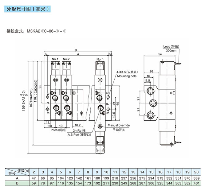 M3KA210-06,M3KA220-06,M3KA230-06,M3KA240-06,M3KA250-06,M3KA280-06,M3KA210-06-B,先導(dǎo)式五通匯流板型電磁閥