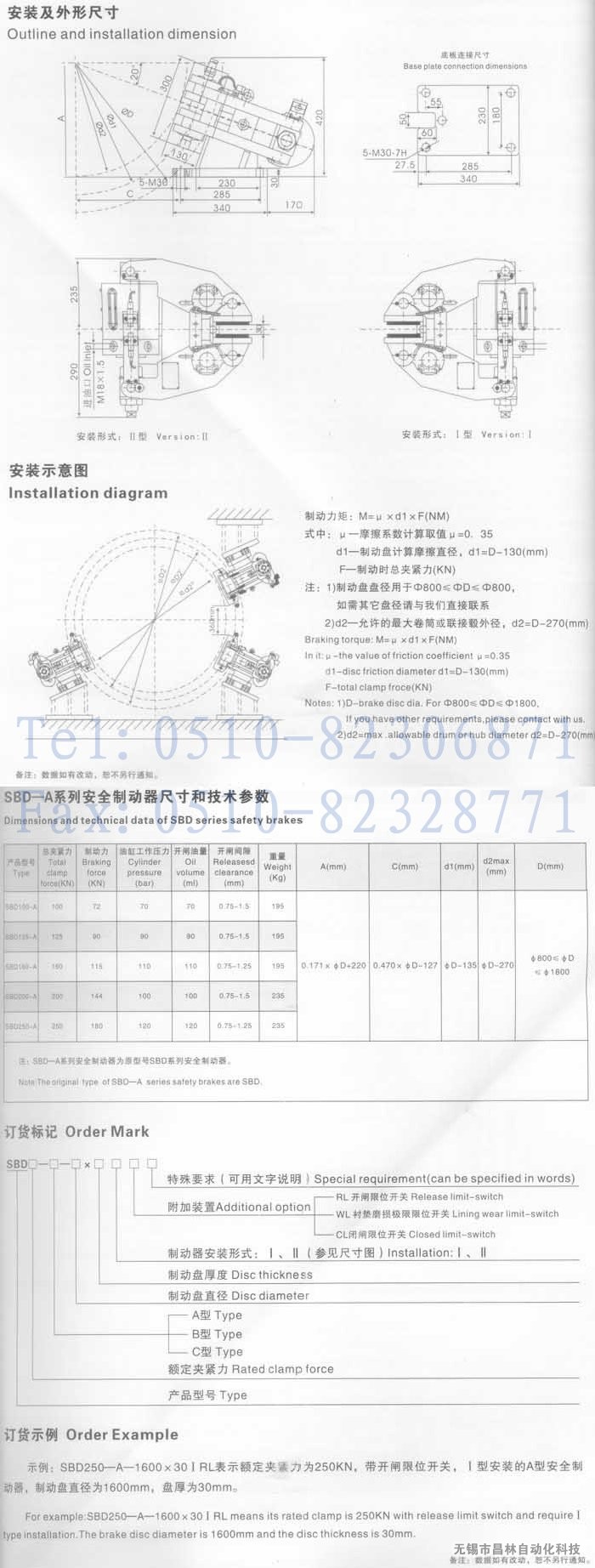 SBD100-A,SBD125-A,SBD160-A,SBD200-A,SBD250-A,液壓安全制動器