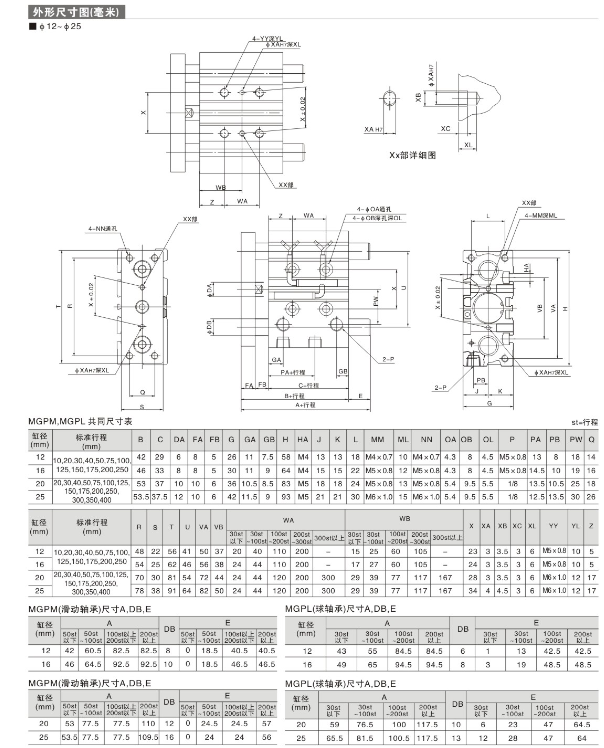 三桿氣缸 MGPL12-10,MGPL12-20,MGPL12-30,MGPL12-40,MGPL12-50,MGPL12-60,MGPL12-70,MGPL12-75, MGPL12-80,MGPL12-90,MGPL12-100,MGPL16-10,MGPL16-20,MGPL16-30,MGPL16-40,MGPL16-50