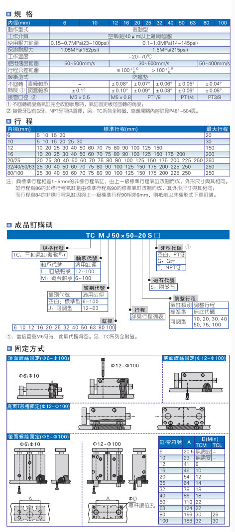 亞德客型三桿氣缸 TCL12*10,TCL12*20,TCL12*25,TCL12*30,TCL12*40,TCL12*50,TCL12*60,TCL12*70,TCL12*75, TCL12*80,TCL12*90,TCL12*100,TCL16*10,TCL16*20,TCL16*25,TCL16*30,TCL16*40,TCL16*50