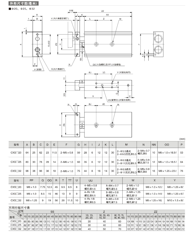 雙桿氣缸 CXSM6-10,CXSM6-15,CXSM6-20,CXSM6-25,CXSM6-30,CXSM6-35,CXSM6-40,CXSM6-45,CXSM6-50, CXSM10-10,CXSM10-15,CXSM10-20,CXSM10-25,CXSM10-30,CXSM10-35,CXSM10-40,CXSM10-45