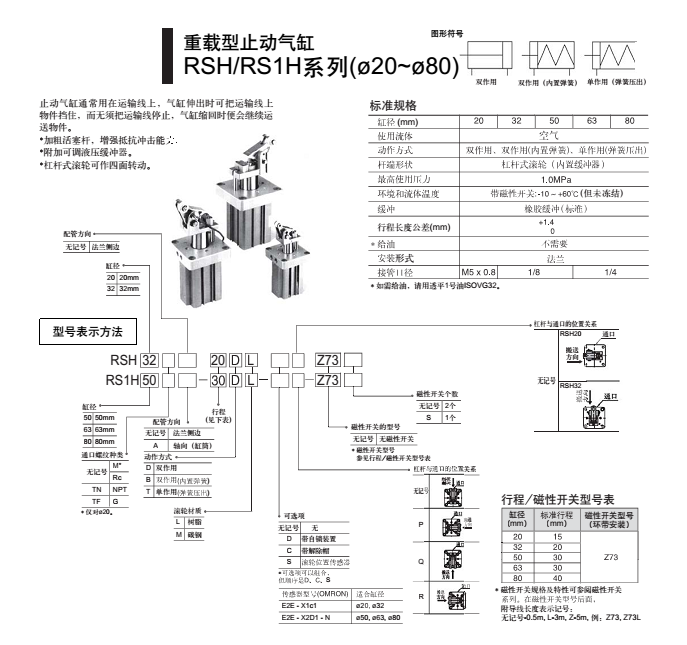 重載型止動(dòng)氣缸 RSH20-10BL,RSH20-20BL,RSH20-30BL, RSH20-40BL,RSH20-50BL,RSH25-10BL,RSH25-20BL,RSH25-30BL,RSH25-40BL,RSH25-50BL, RSH32-10BL,RSH32-20BL,RSH32-30BL,RSH32-40BL,RSH32-50BL,RSH40-10BL,RSH40-20BL
