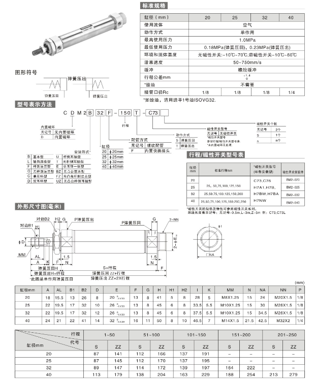 CDM2C32-200,CDM2C32-250,CDM2C32-300,CDM2C40-25,CDM2C40-50,CDM2C40-75,CDM2C40-100,