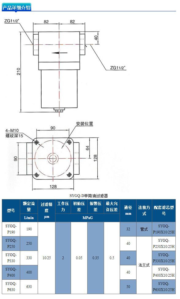 SYGQ-P190,SYGQ-P250,SYGQ-P330,SYGQ-P400,SYGQ-P630,SYGQ-D型單筒油過濾器