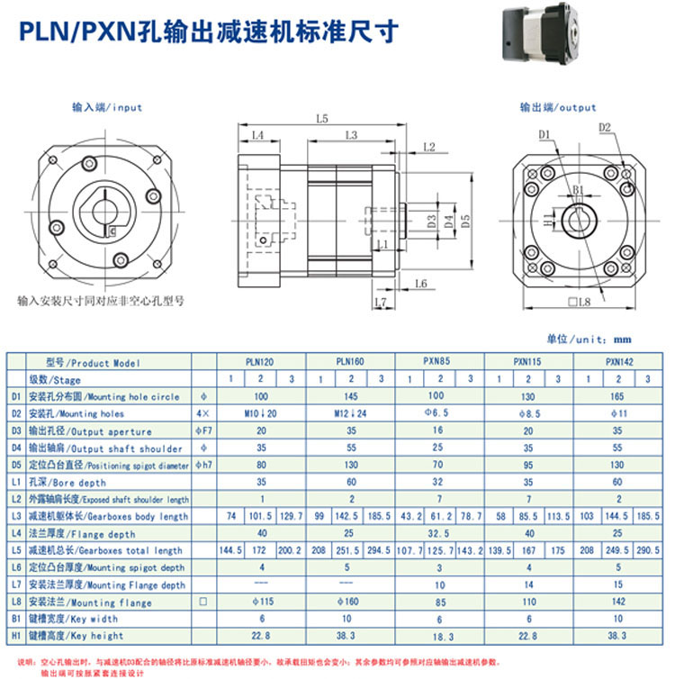 詳細信息 PLN120,PLN160,PXN85,PXN115,PXN142,PLN190,PLN240,PLN285,PLN330,PLN400,減速機