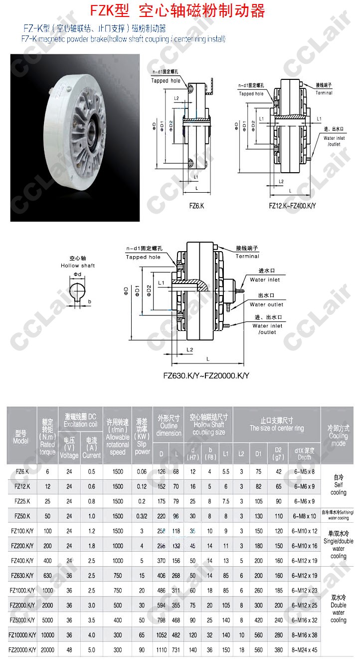 FZ6.K,FZ12.K,FZ25.K,FZ50.K,FZ100.K/Y,FZ200.K/Y,FZ400.K/Y,FZ630.K/Y,空心軸磁粉制動器
