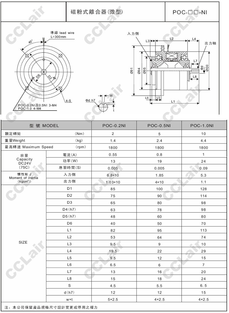 POC-0.2NI,POC-0.5NI,POC-1.0NI,微型磁粉式離合器 詳細(xì)信息