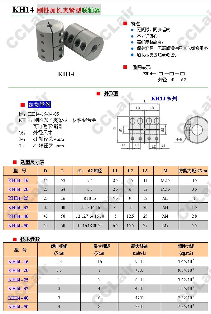 KH14-16,KH14-20,KH14-25,KH14-32,KH14-40,KH14-50,剛性加長夾緊型聯(lián)軸器
