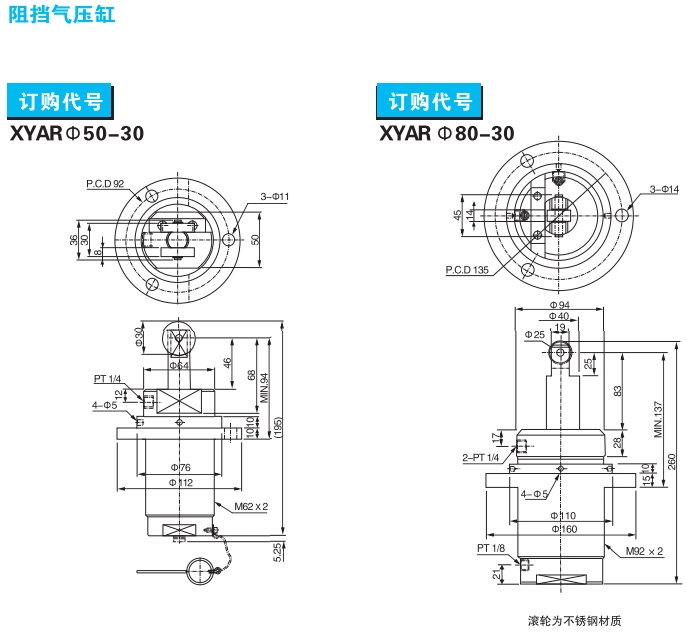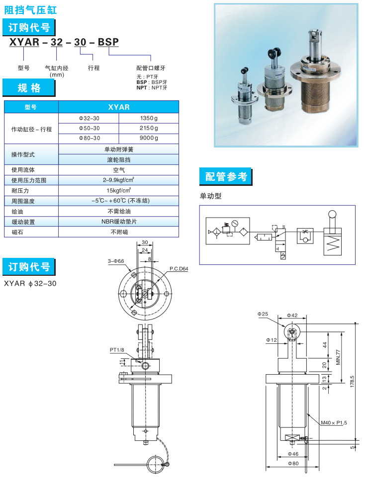 XYAR-32-30,XYAR-50-30,XYAR-80-30,XYAR-32-30-BSP,XYAR-50-30-BSP,阻擋氣缸