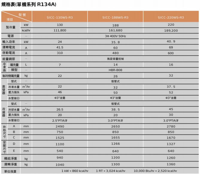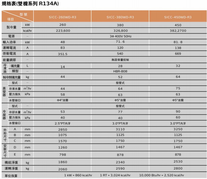 SICC-130WS-R3,SICC-188WS-R3,SICC-220WS-R3,SICC-260WD-R3,SICC-380WD-R3,SICC-450WD-R3環(huán)保冷媒水冷式中央冷水主機
