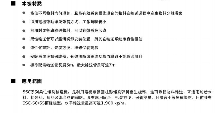 詳細(xì)信息 SSC-50,SSC-65,柔性螺旋輸送機(jī) 共0條 相關(guān)評論 |