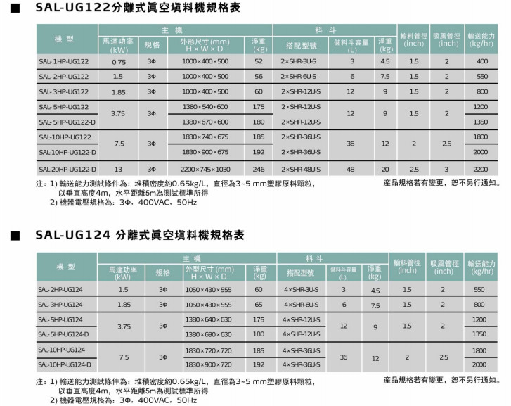 SAL-1HP-UG122,SAL-2HP-UG122,SAL-3HP-UG122,SAL-5HP-UG122,SAL-5HP-UG122-D,SAL-10HP-UG122,SAL-10HP-UG122-D,SAL-20HP-UG122-D,SAL-2HP-UG124,SAL-3HP-UG124,SAL-5HP-UG124,SAL-5HP-UG124-D,SAL-10HP-UG124,SAL-10HP-UG124-D,"一對二/四"分離式真空填料機(jī)