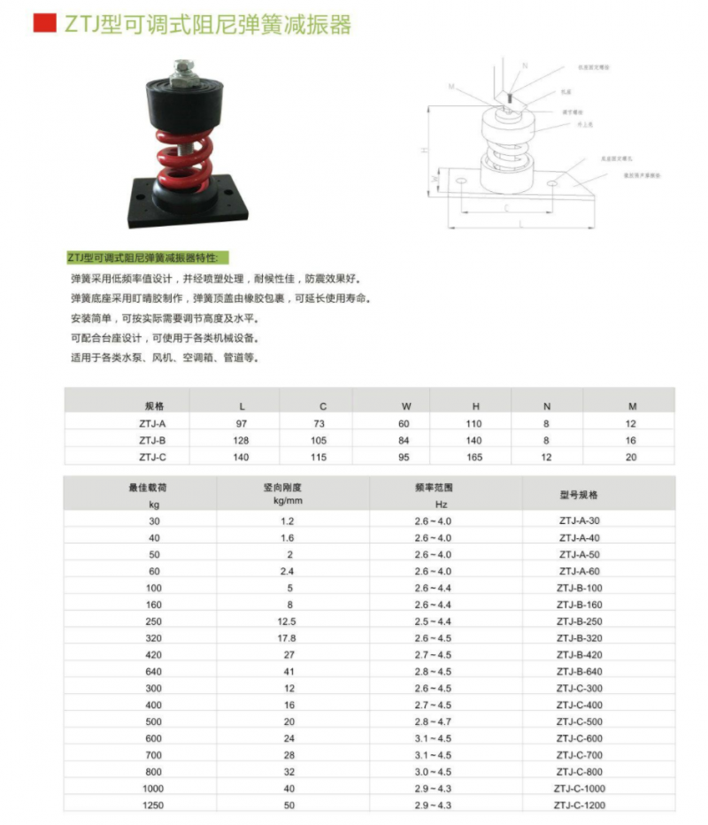 可調(diào)式阻尼彈簧減振器 ZTJ-A-30,ZTJ-A-40,ZTJ-A-50,ZTJ-A-60,ZTJ-B-100,ZTJ-B-160,ZTJ-B-250