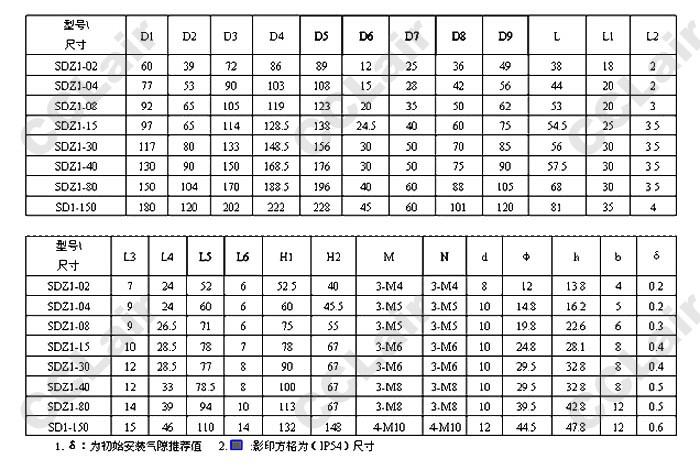 四 、技術(shù)參數(shù)及安裝尺寸表(附圖一、二)