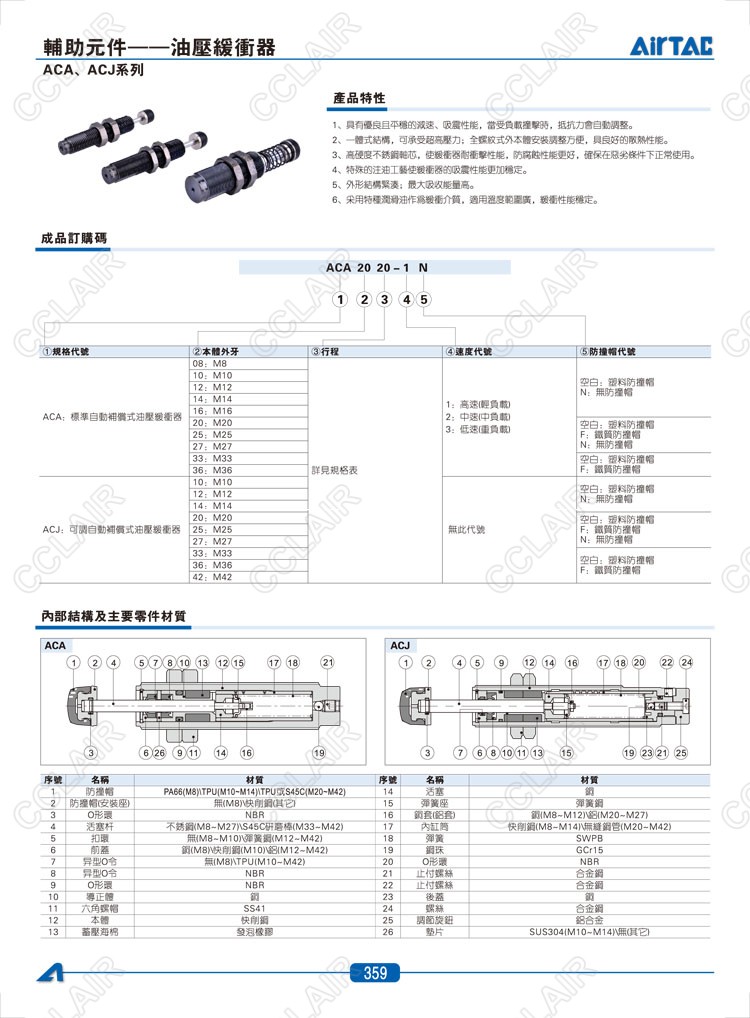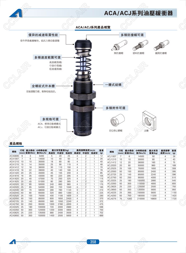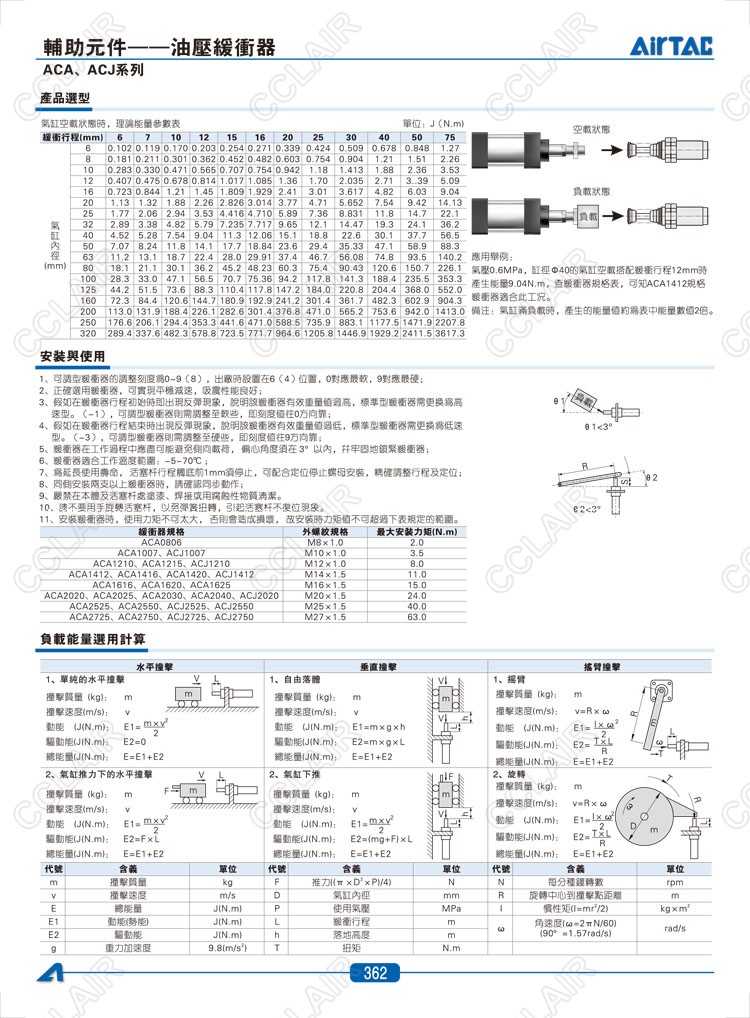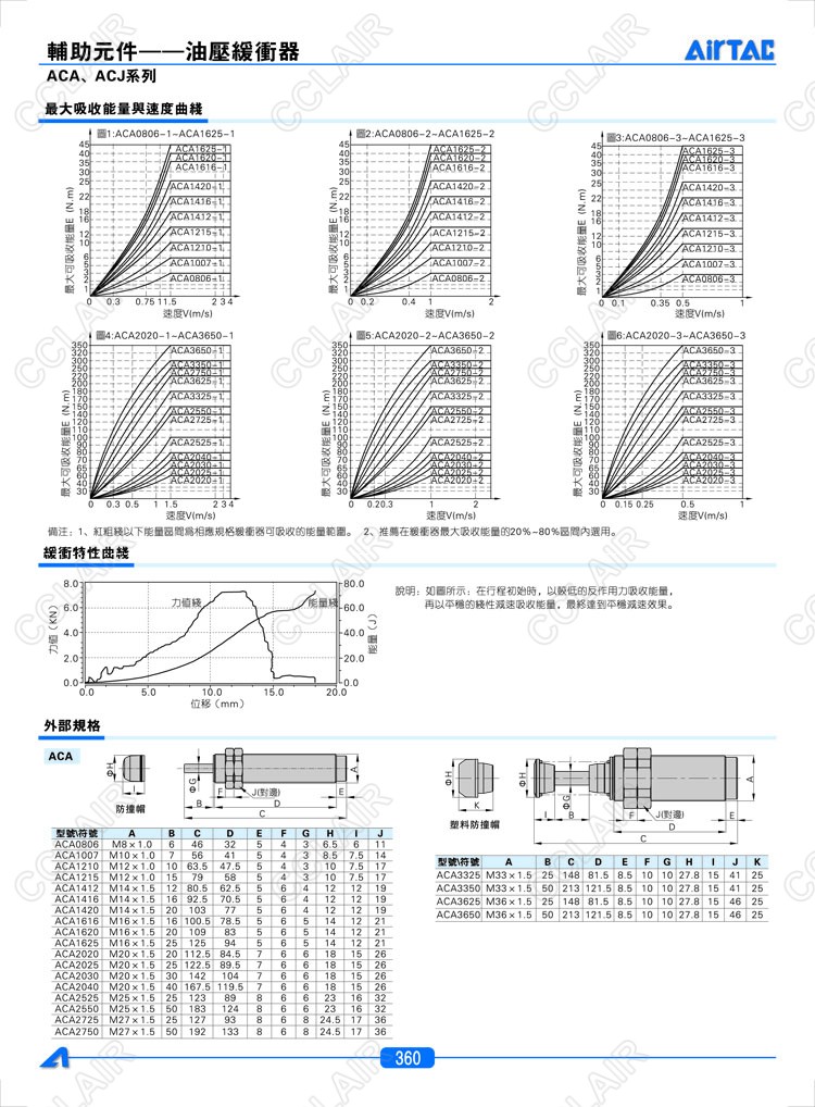 亞德客AIRTAC,ACA0806,ACA1007,AC1210,CJ1007,ACJ1210,ACJ1412,ACJ2020,油壓緩沖器