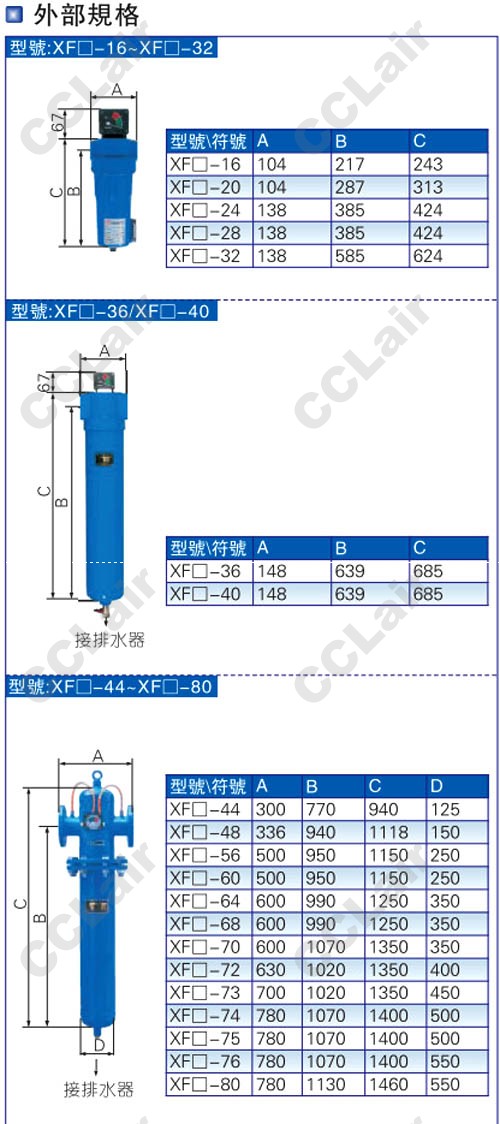 XF-9-16,XF-7-20,XF-5-24,XF-3-28,XF-1-32,XF-9-68,XF-7-70,XF-5-72,XF-3-76,XF-1-80,過濾器
