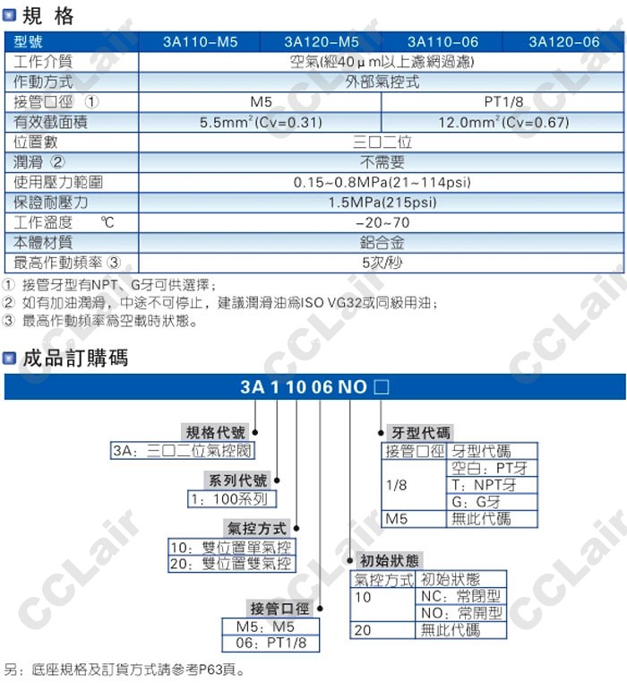 3A110-M5,3A120-M5,3A110-06,3A120-06,3A110-M5-NC-T,3A120-M5-NO-T,3A110-06-NC-G,氣控閥