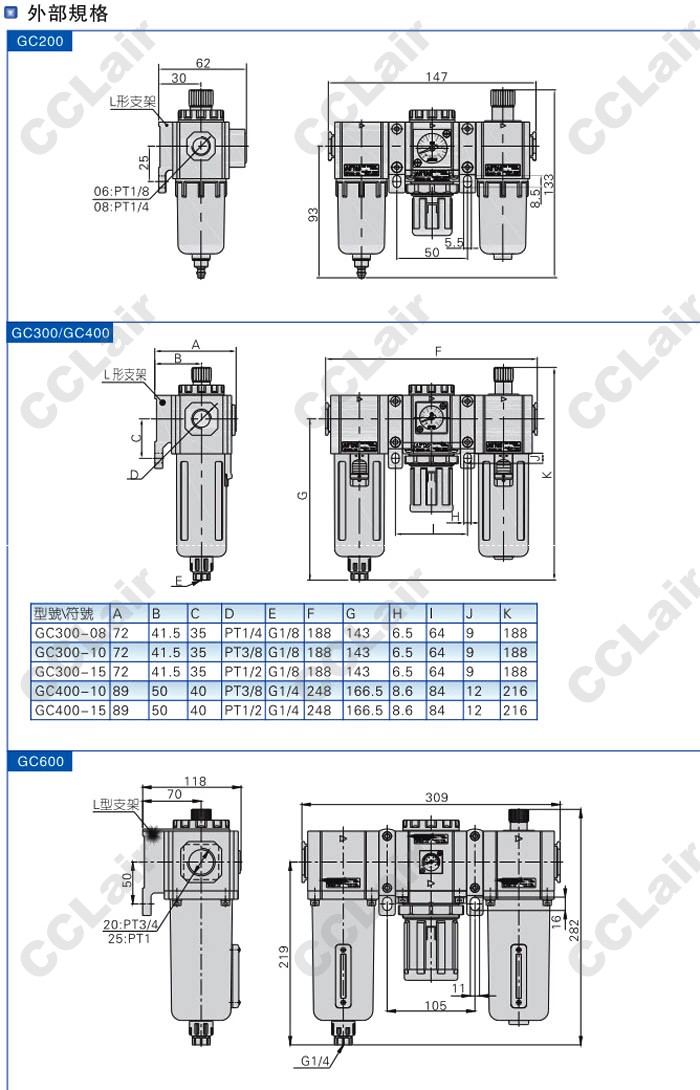 GC200-06,GC200-08,GC300-08,GC300-10,GC300-15,GC400-10,GC400-15,GC600-20,GC600-25,調(diào)理組合
