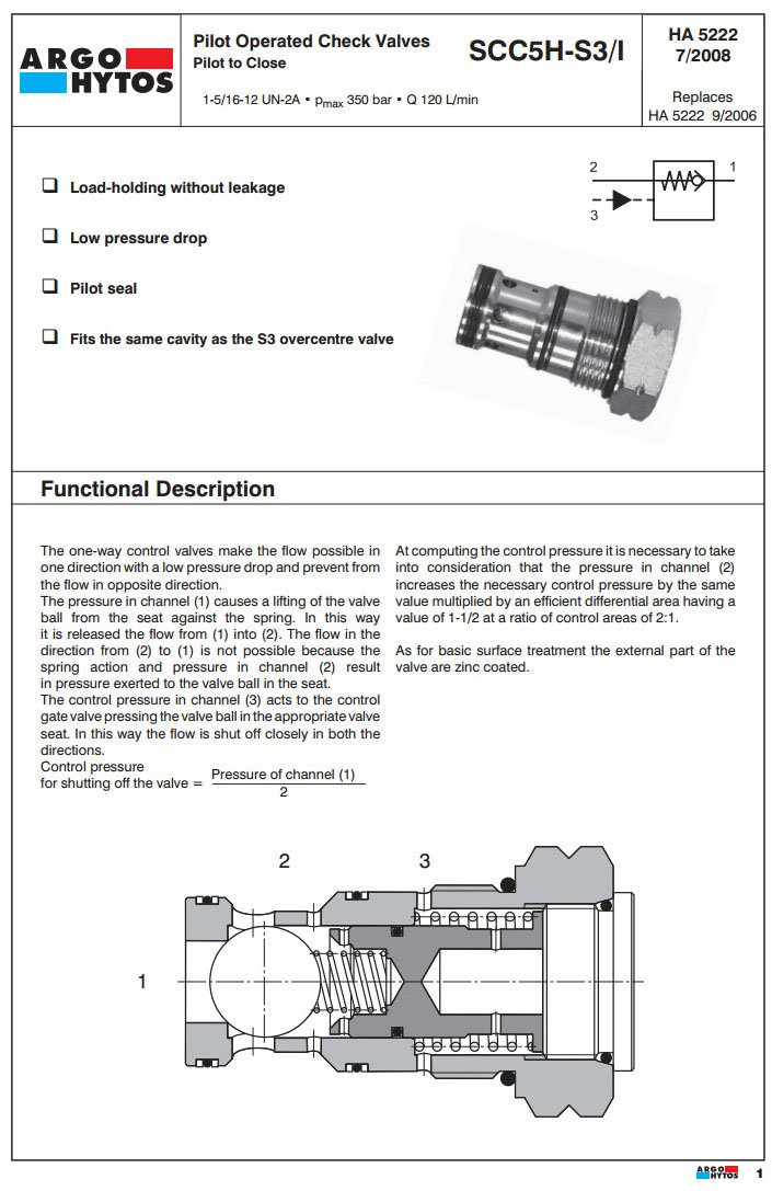 首頁 > 產(chǎn)品&解決方案 > SCC5H-S3/I2,ARGO液控單向閥