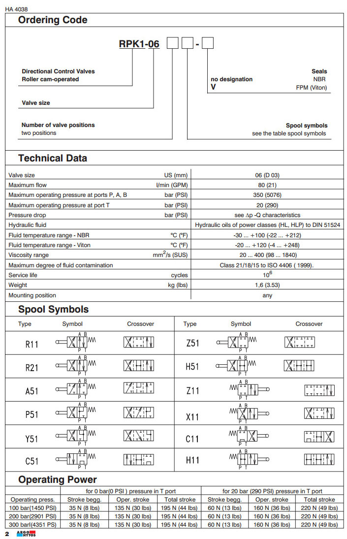 首頁(yè) > 產(chǎn)品&解決方案 > RPK1-06,ARGO手動(dòng)方向控制閥