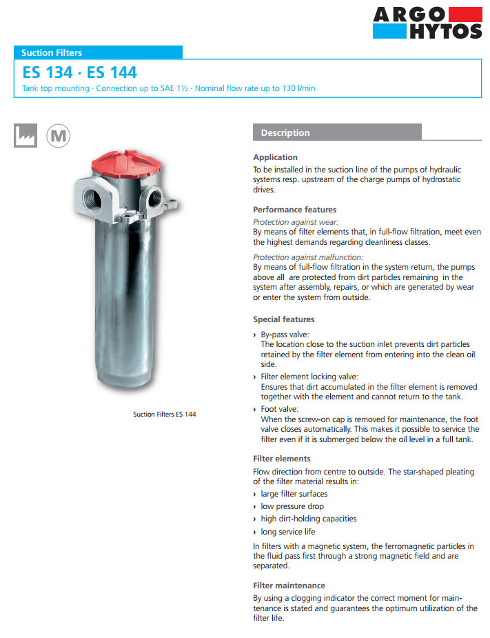 首頁 > 產(chǎn)品&解決方案 > ES134-0501,ES134-0001,ES144-6110,ARGO吸油過濾器