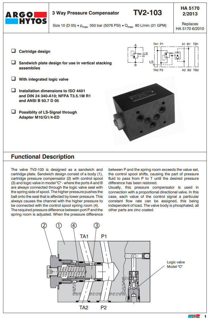 首頁 > 產(chǎn)品&解決方案 > TV2-103/S,TV2-103/MA,TV2-103/MB,TV2-103/MC,ARGO 3路壓力補償器