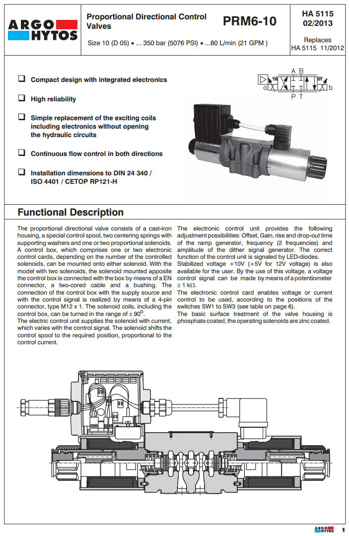 首頁 > 產(chǎn)品&解決方案 > PRM6-10,PRM6-103Z11B/30-12,PRM6-103Z11/30-12,PRM6-102Z51/30-24,PRM6-103Z11/60-24,ARGO比例方向控制閥