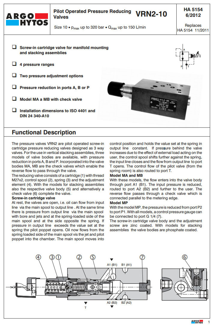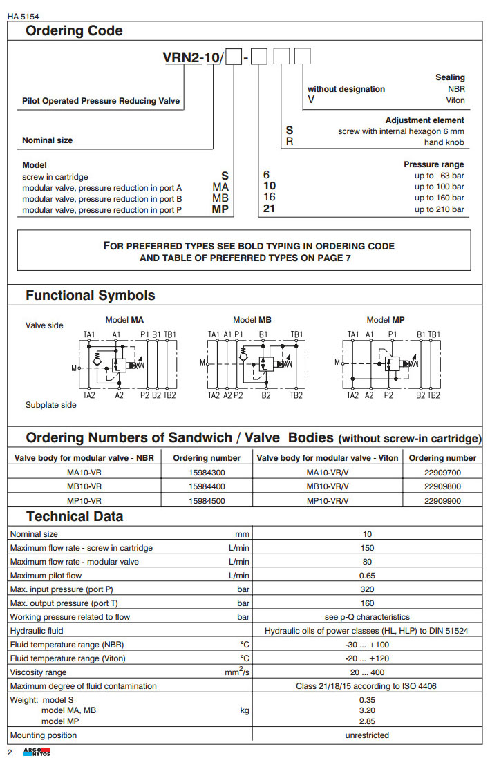 VRN2-10/S,VRN2-10/MA,VRN2-10/MB,VRN2-10/MP,VRN2-10/S-6,VRN2-10/MP-21,ARGO先導(dǎo)式減壓閥