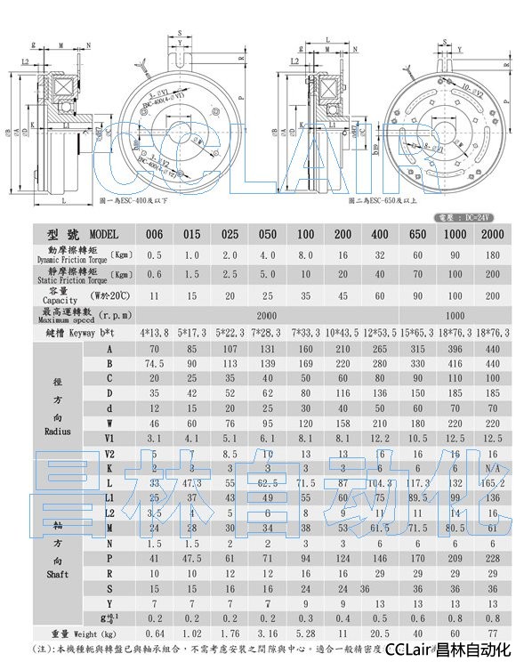 詳細(xì)信息 ESC-006,ESC-015,ESC-025,ESC-050,標(biāo)準(zhǔn)型電磁離合器
