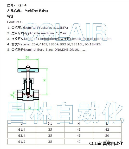 詳細(xì)信息 QJ-4,氣動管路截止閥